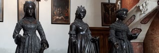 Ich hatte beruflich öfter in Innsbruck zu tun. Da blieb aber meist nur Zeit für einen Altstadtspaziergang. Erst bei einem privaten Besuch habe ich unsere Kunigunde entdeckt – 2 ½ Meter groß, ohne Hund, auf dem Foto ganz rechts. Sie ist eine von 28 Bronzefiguren rund um das leere Grab von Maximilian in der Hofkirche, das zu den kunsthistorisch wertvollsten Kaisergräbern Europas zählt. Unter die 28 „Schwarzmander“, haben es immerhin 8 Frauen geschafft. Damit ist ihr Anteil genau so hoch wie in den Aufsichtsräten der börsennotierten Unternehmen in Österreich. Bloß 500 Jahre früher. Maximilian hat die Figuren selbst in Auftrag gegeben, begraben ist er in Wiener Neustadt und sein Herz in Brügge bei Maria von Burgund.