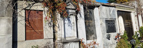 Und nun noch ein Blick auf die einzige Prinzessin: Djanan Djavidan. Auf dem Grabstein ein Name, keine Daten. Die 1877 in Amerika geborene ungarischem Adelige heiratet mit 23 – zunächst heimlich – den letzten Vizekönig von Ägypten. Durch ihn lernt sie die arabische Welt kennen und schreibt später ein viel beachtetes Buch mit dem Titel „Harem“. Darin tritt sie energisch für die Emanzipation der Frauen im Orient ein. Nach der Trennung kehrt die Vieltalentierte 1914 nach Europa zurück und arbeitet als Schriftstellerin, Hörbuchautorin und Komponistin. Ab 1953 lebt sie in Graz und widmet sich vorrangig der Malerei. Sie wird 91 Jahre alt.